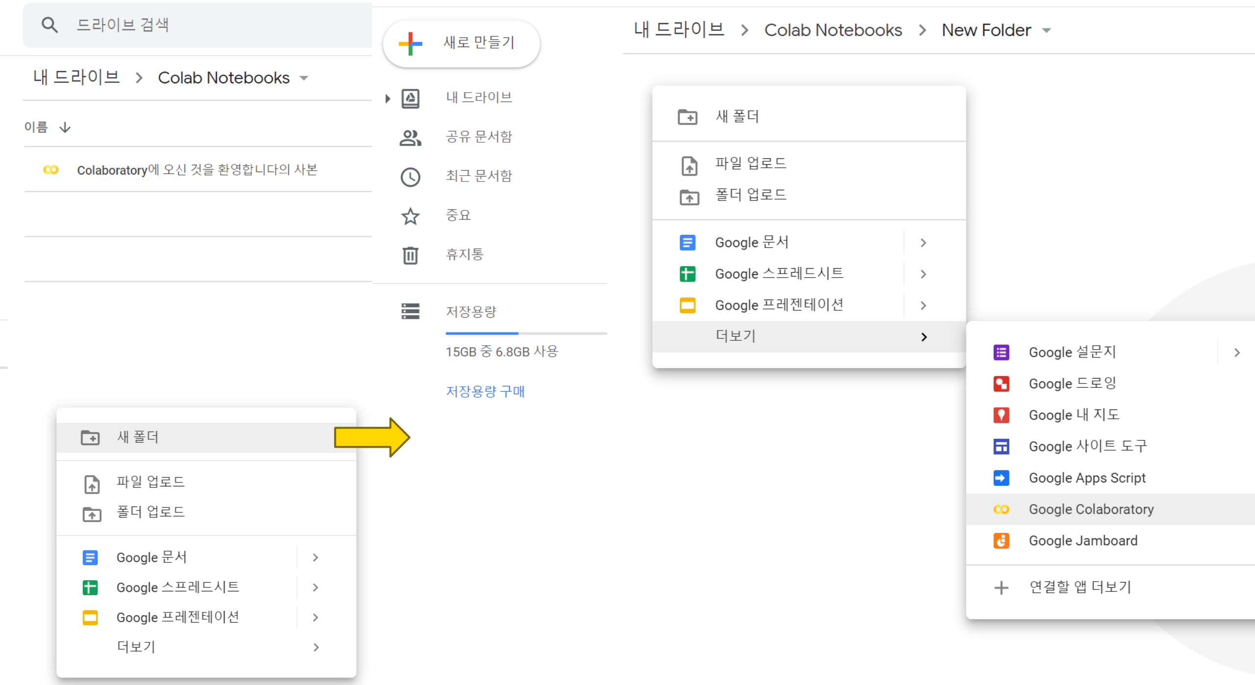 ํด๋ ๋ฐํ์ ๋ง์ฐ์ค ์ฐํด๋ฆญ ํ [๋๋ณด๊ธฐ > Colaboratory]๋ฅผ ์ ํํ๋ฉด ์ ๋ ธํธ๋ถ์ด ๋ง๋ค์ด์ง๋ค.