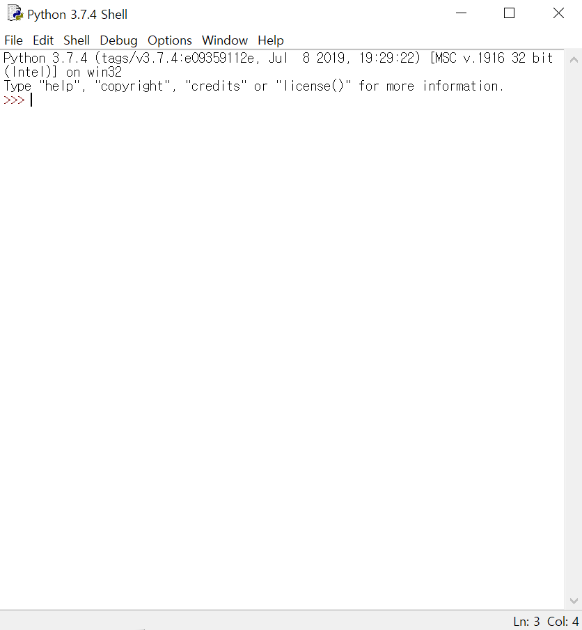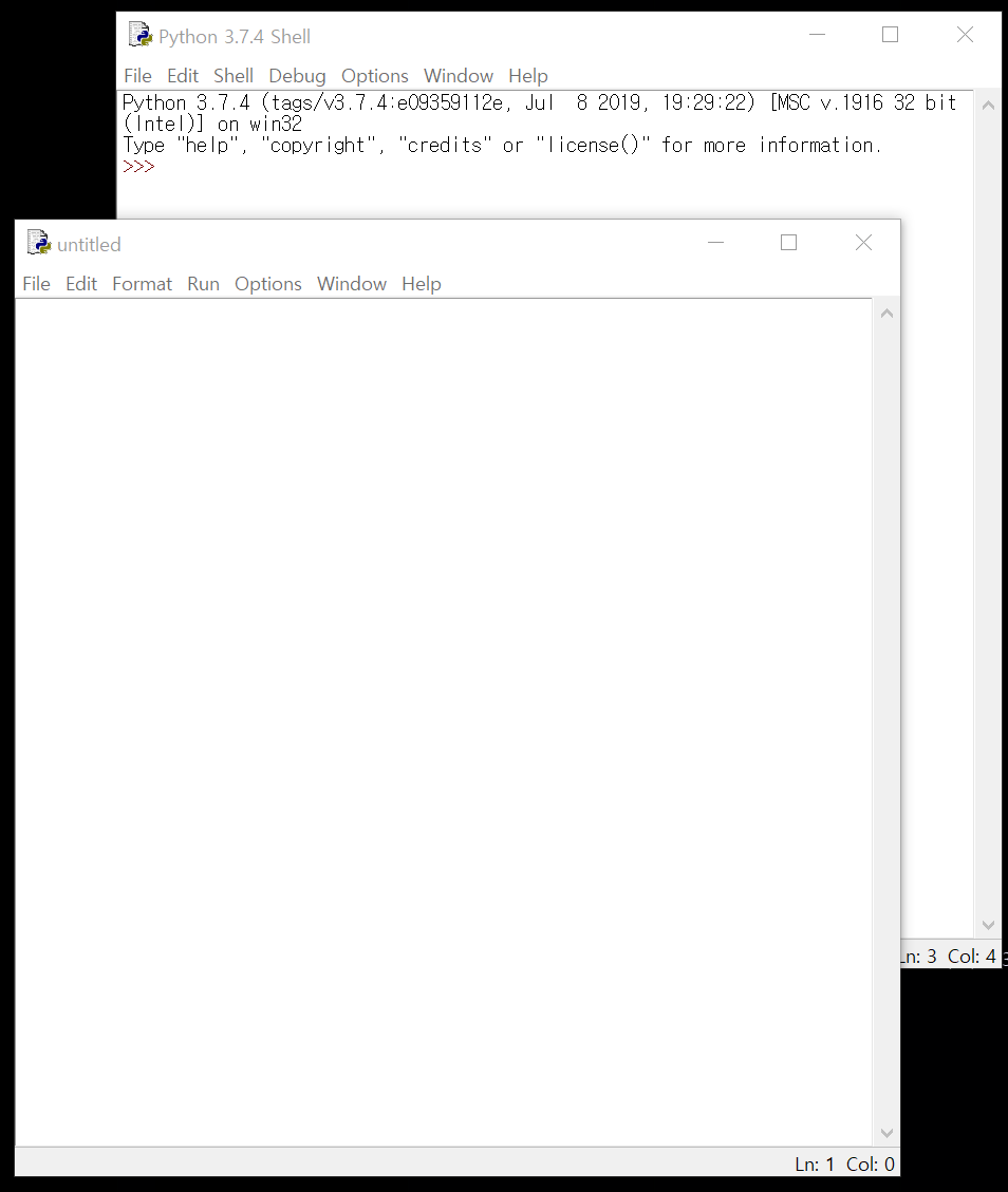 ํ๋์ ํ์๋ก ๋ IDLE๋ฅผ ์ฐํด๋ฆญํ๋ฉด ์๋์ ๊ฐ์ ์ฐฝ์ด ๋จ๋๋ฐ ์ฌ๊ธฐ์์ ๋ฐ๋ก ์ค์ต์ ํ ์ ์๋ค.