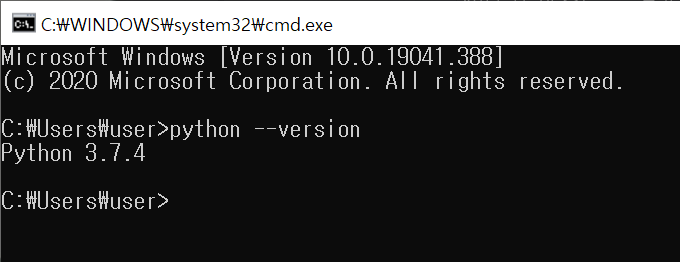 "python --version"이라는 명령어를 입력한다.