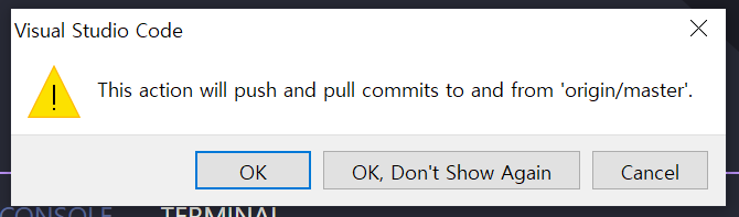 Visual Studio Code terminal에 위와 같은 오류 메시지가 뜰 때 (노란 박스 안에는 깃허브 레파지토리명)